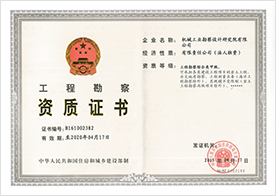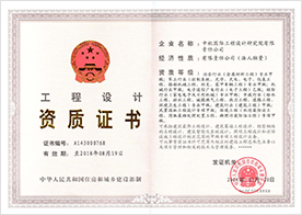 工程设计资质证书 资质等级:甲级(冶金行业;军工行业;机械行业;轻纺行业;市政行业;建筑行业;风景园林工程设计;环境工程;) 乙级:电子通讯广电行业